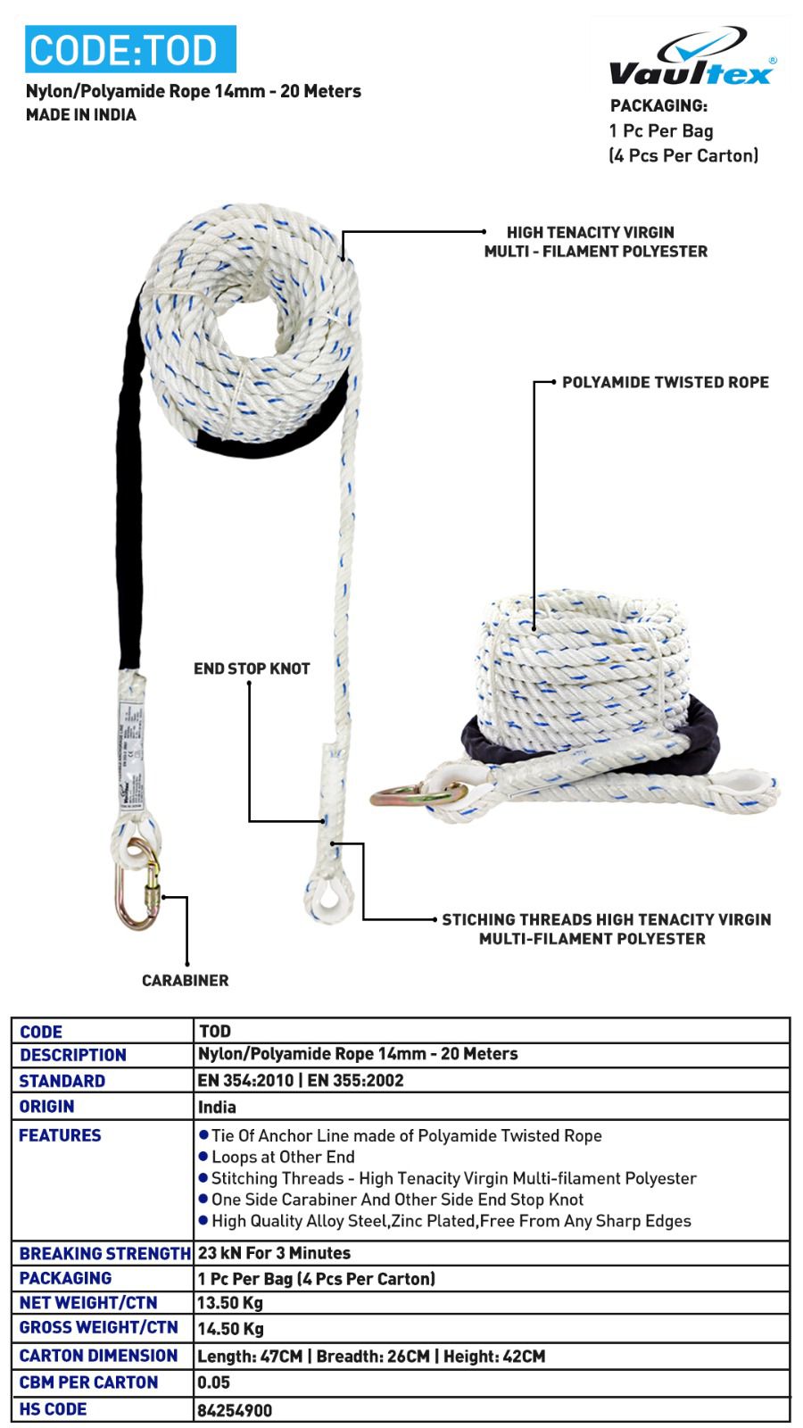• Applications: It is primarily used in work-at-height scenarios, including construction, ladder climbing, and fall arrest systems.