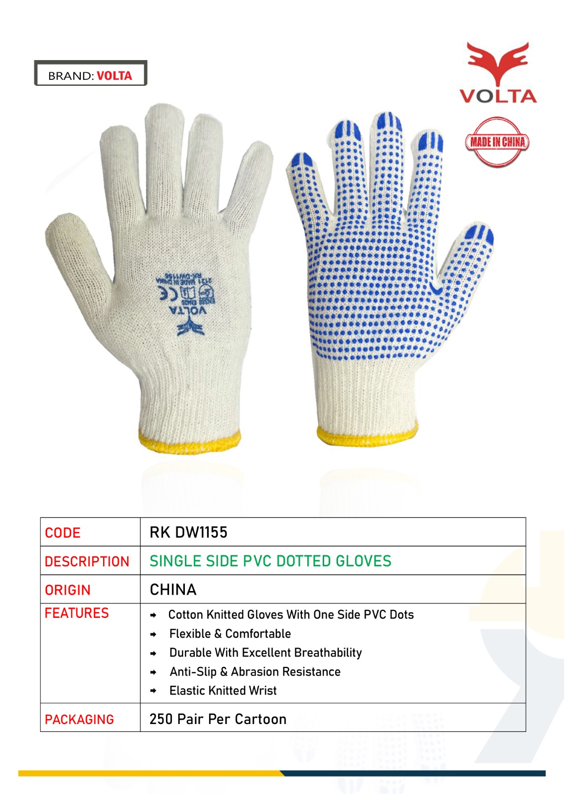 Volta Single Side PVC Dotted Gloves, designed for safety and general use.