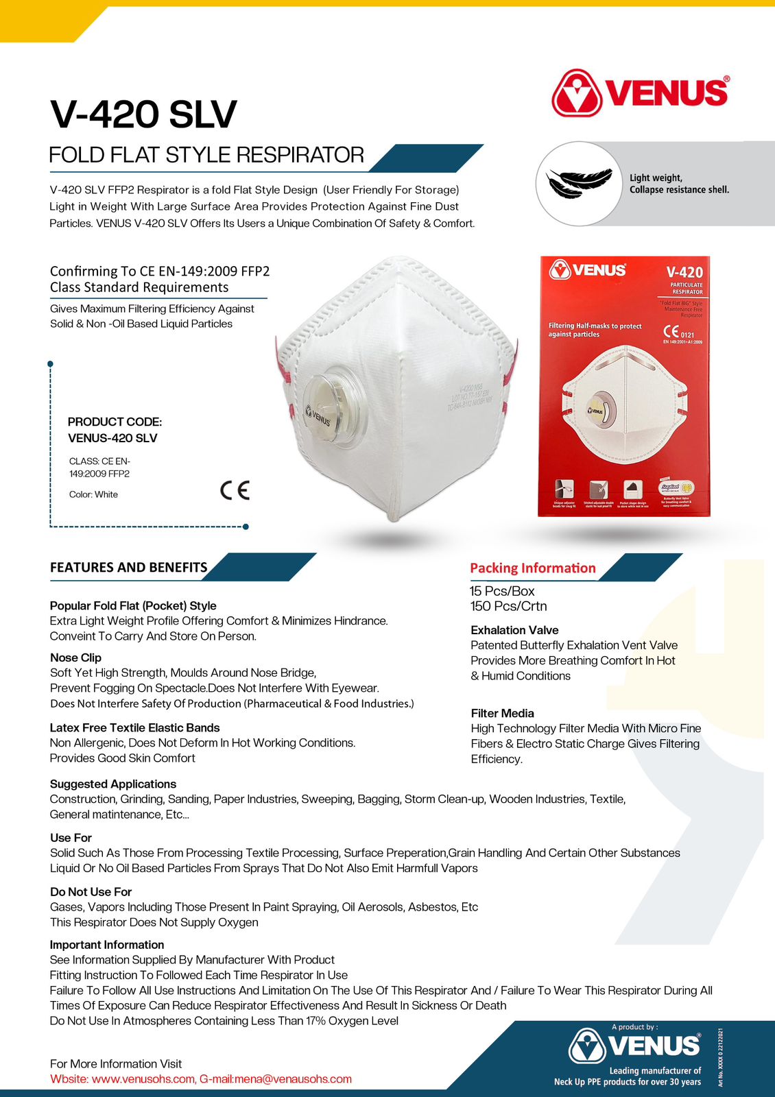 Respirators compliant with NIOSH, EN, and ISO safety standards.