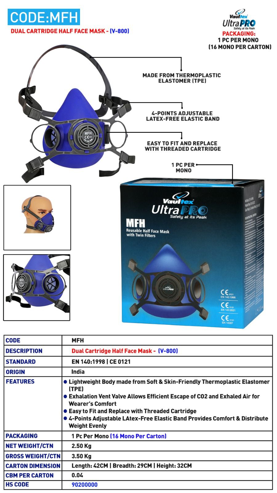 Multiple sizes and models for different face shapes and working conditions.