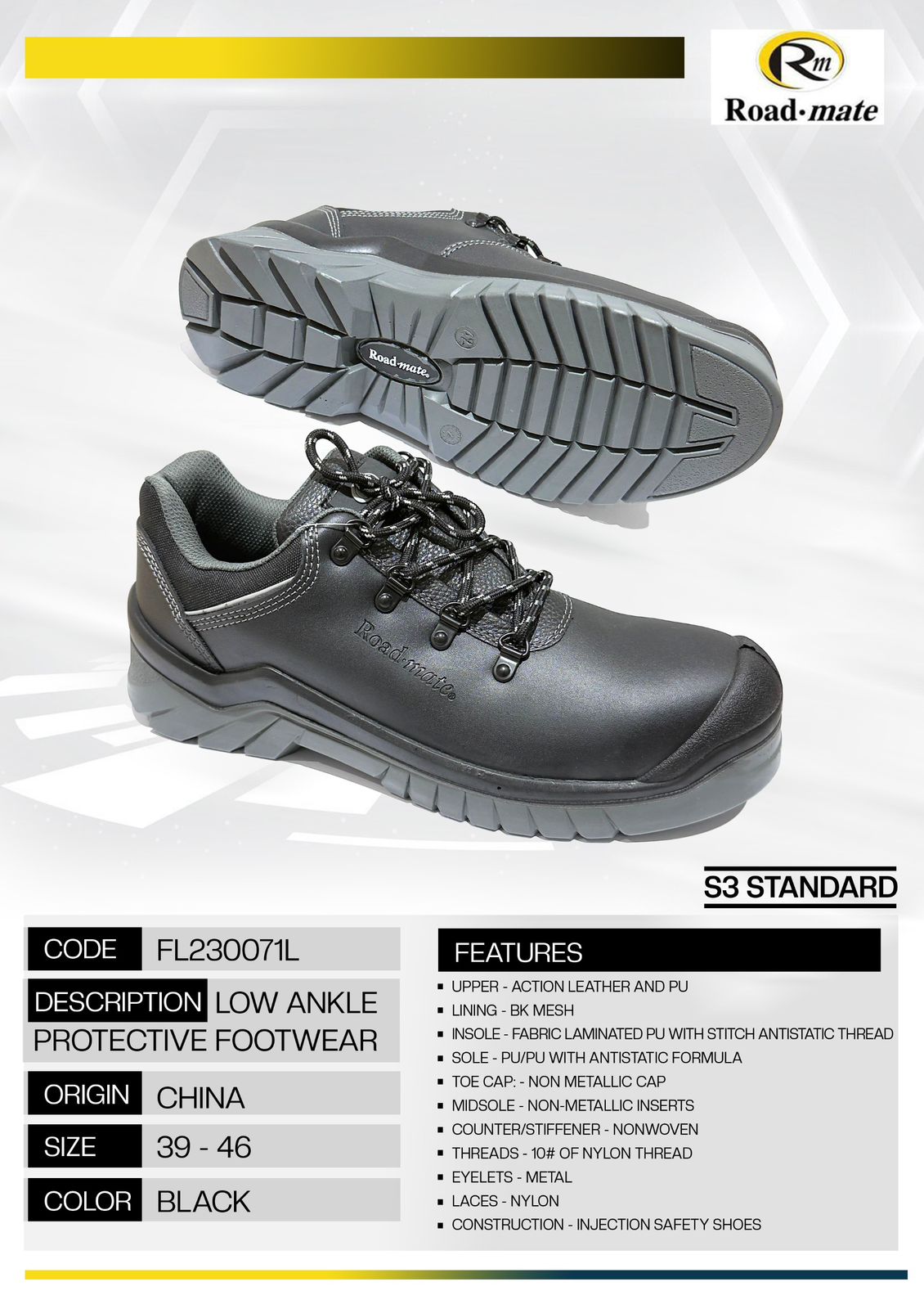 Road-mate FL230081H, a high-ankle protective safety boot designed to meet the S3 Standard for workplace safety.